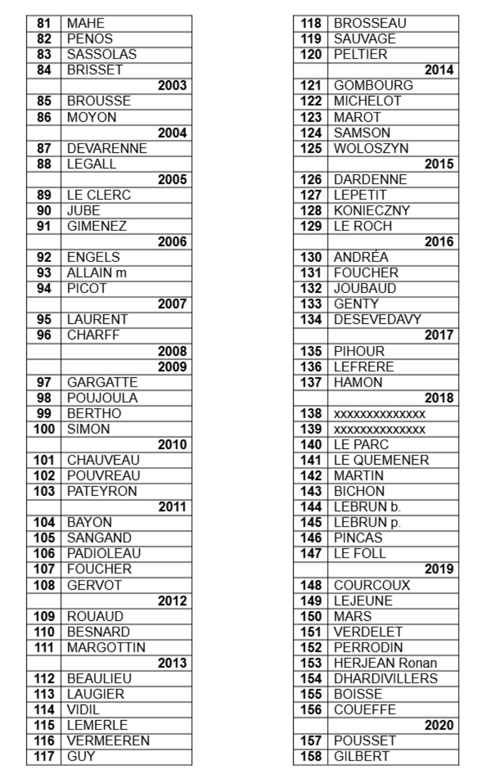 LISTE DES ADHERENTS DEPUIS L'ORIGINE