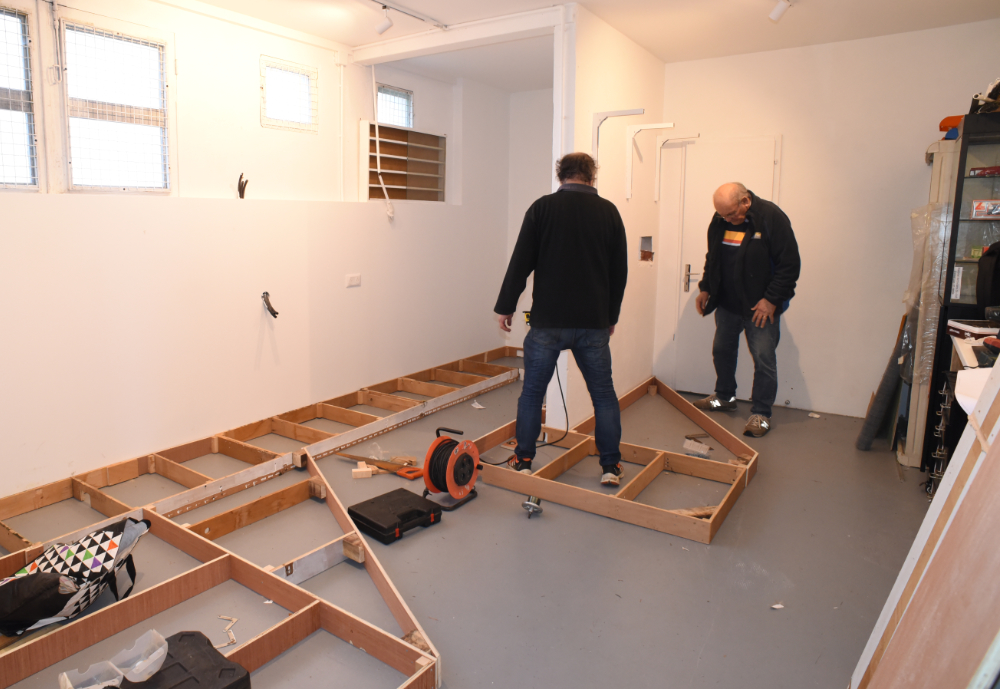 Nous préparons les pieds des modules pour la prochaine exposition.