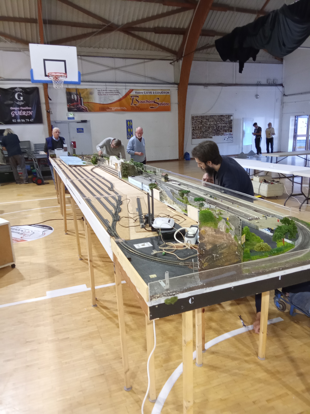 Le réseau analogique au premier plan et le stand de matériel d'occasion au second plan.
